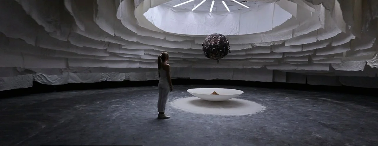 "An installation in the form of a shimmering labyrinth, Inside There Falls invites audiences to individually explore and seek out its secrets. From hidden pathways made of paper, voices emanate from all around and the entwinements of a pair of illusive and elusive dancers may be glimpsed. In this astonishing creation from UK-based artist Mira Calix, the walls literally speak – music, voice and dance converge into a profound and fully immersive experience. Inside There Falls is a space to dream and discover. Visually and aurally sublime, this world premiere features choreography by Sydney Dance Company’s Artistic Director Rafael Bonachela, performances by Sydney Dance Company dancers and Associate Artists and narration by Hayley Atwell."